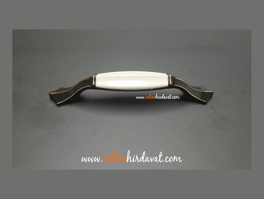 Ventus 2037 Yaldızlı Porselen Mobilya Kulp Parlak Siyah Sarı - 128 mm