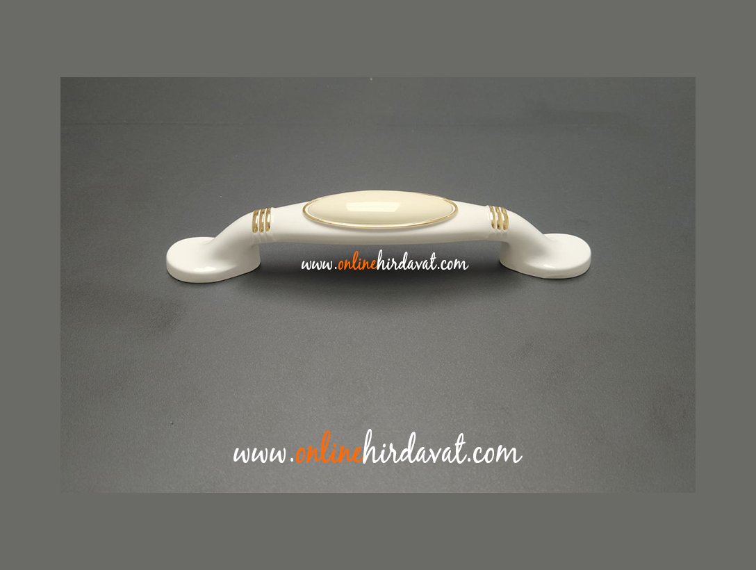 Ventus 2038 Yaldızlı Porselen Mobilya Kulp Beyaz Sarı - 96 mm